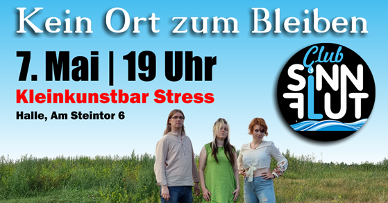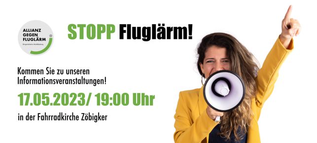 'Club Sinnflut' unterstützt die Informationsveranstaltung der 'Allianz gegen Fluglärm' (Bürgerinitiative Markkleeberg) am 17. Mai 2023 um 19 Uhr in der Fahrradkirche Zöbigker mit einer musikalischen Umrahmung.